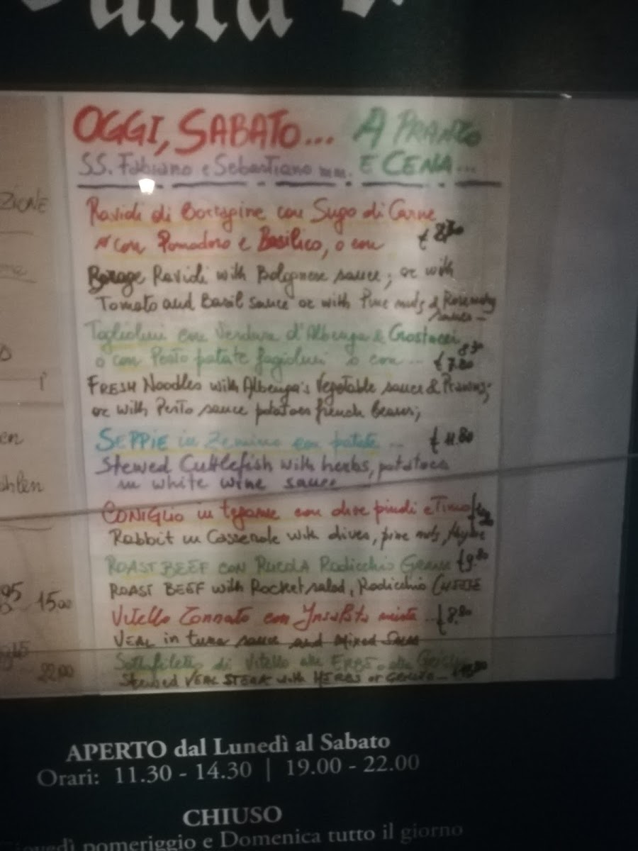 “ Superb dishes, friendly service, home cooking style. The rabbit roulade is a must, and you should also try the budino (like a caramel panna cotta). Simple presentation but low prices. Dogs get a bowl of water! ”